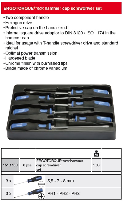 ERGOMAX SCREWDRIVER SET, 6PCS, SLOT + PH