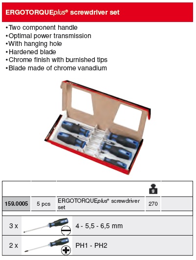 ERGOTORQUE + SCREWDRIVER SET, 5 PCS PH + SLOT