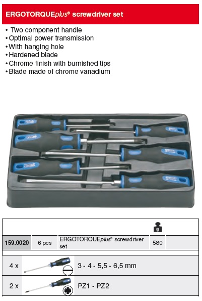 ERGO + SCREWDRIVER SET, SLOT + PZ, 6PCS