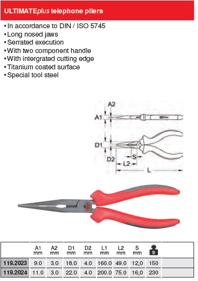 ULTIMATE + LONG NOSE PLIERS, 165MM