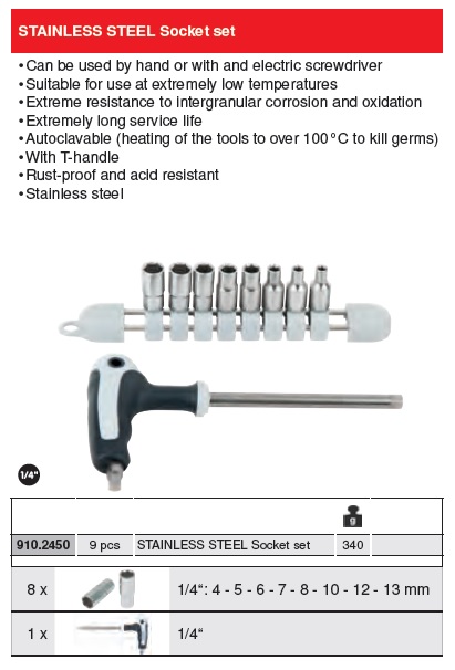 STAINLESS SOCKET SET 1/4" 9-PCS.