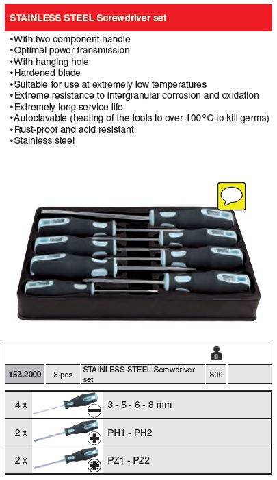 產品 > 頂尖德國工藝 專屬工具KS Tools > 不銹鋼工具 > 8件式 不銹鋼 螺絲起子套組