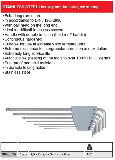 STAINLESS KEY WRENCH HEX SET, XL, 7PCS