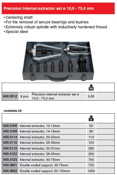 內部 拉拔器 集,9PCS,Ø10-75MM